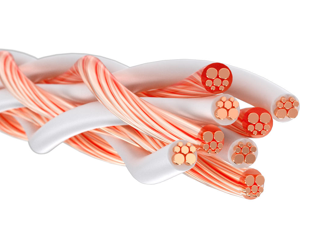 Consisting of eight individual TCSS conductors, four white and four clear that utilise Kimber’s proven braiding technique. The insulating dielectric is high pressure-low temperature-extruded FEP. The individual conductors are Hyper-pure copper, arranged in proven VariStrand™ conductor geometry. The aggregate wire size is two 2.63mm2 conductors. The focus, transparency, and transient speed of 4TC are stunning. 4TC continues to receive enthusiastic reviews and recommendations from consumers and critics worldwide.