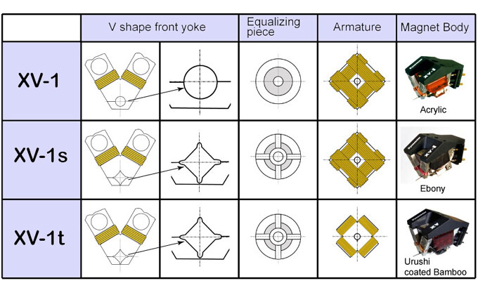 The subsequent flagship design for Dynavector the XV-1s released in 2002 refined and improved the technology. Retaining the patented Flux Dumping but included the magnetically stable front yoke with the unique square shaped aperture and improved magnetic equalising component, all encompassed in an African Ebony body to provide further stability for the magnetic components.
