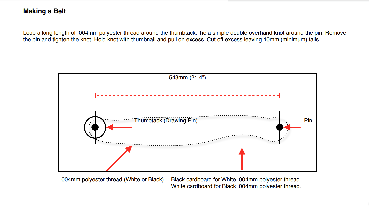 NOTE: Do not use nylon (fishing line) for the belt, it is not suitable as it stretches over time.